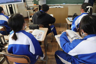 外国語の授業では、日本の四季について教科書を読みながら学習しました。春は「cherry blossoms(桜)」等、日本の四季それぞれで登場するものが書かれていました。英語を読み、日本語で訳しながら確認していました。
