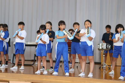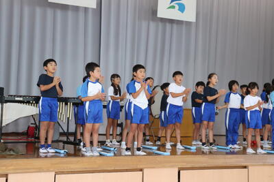 業間の時間に体育館で音楽発表会に向けての練習をしました。内容は合唱と合奏です。音楽主任の先生の指示のもと、手話を取り入れた合唱とさまざまな楽器をつかった合奏を行いました。とても上手で思わず拍手をしてしまいました。来週予定している予行演奏や当日によい発表ができるように期待しています。