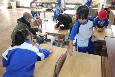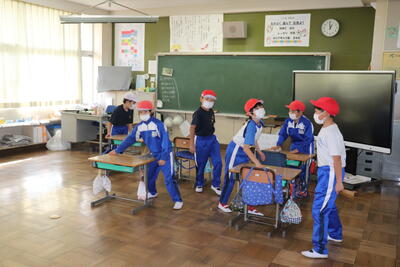 国語の授業では、「うみへのながいたび」を学習しました。今回は、話の中でのシーンを自分で選んでその理由を説明しました。どの児童も自分が印象に残ったシーンについてすすんで手を挙げて発表しました。