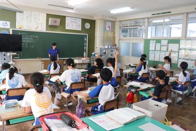 算数の授業では、「おおよその数(概数)」について学習しました。正確な数でなくてもおおよその数で表す例をあげながら、確認をしていました。