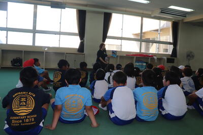 ボランティアの方がお見えになり、3・4年生を対象に若鯉広場で「読み聞かせ」をしていただきました。志茂田景樹(しもだかげき)氏の絵本で、最後には心温まるクジラのお話でした。お忙しい中、いつも「読み聞かせ」にお越しいただき、ありがとうございました。