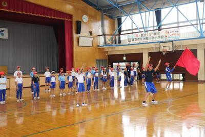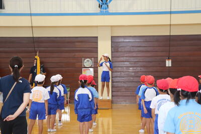 開会式と閉会式の練習をしました。式に臨む姿勢(気を付けや休め等)がとてもよかったです。返事も練習を重ねるうちに大きな声が聞こえるようになってきました。赤白団長のあいさつ、運営委員の司会、開式と閉式担当児童の言葉等、とてもしっかり行っていました。本番まであと3日、どんどんよくなってきているので当日が楽しみです。