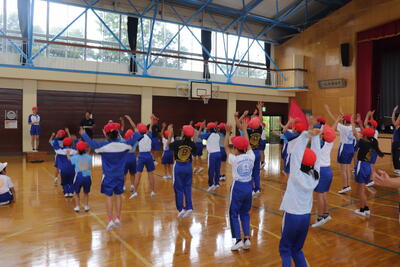 エールから始まり、それぞれのオリジナル応援まで通しました。こちらも声が出てきて、行えば行うほど、よくなってきました。オリジナル応援は、それぞれ、歌とダンスになっています。それぞれの歌(替え歌)とダンスの練習の成果を発揮し、応援賞はどちらの組になるか、赤白両方の組に期待しています。