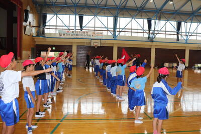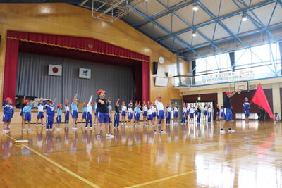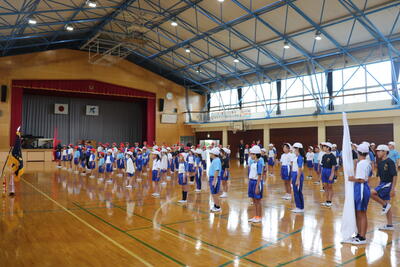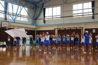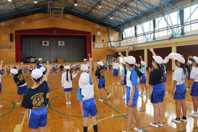 雨の心配があったため、体育館で開閉会式と応援練習を行いました。