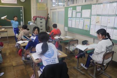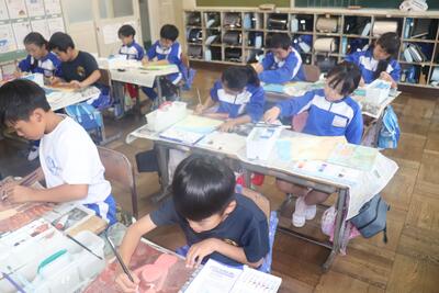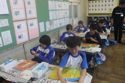 図画工作の授業では、「運動会の思い出」というテーマで印象に残った運動会のシーンを描いていました。徒競走やチャンス走等、躍動感あふれる作品がたくさん見られました。今日は着色まで進んでいたので完成間近です。