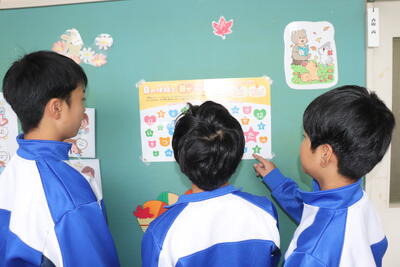 空き時間を使って保健室で、視力検査が行われていました。10月10日は「目の愛護デー」ということで、今月は視力検査や目にまつわるコーナーが保健室前に掲示されています。最近、デジタル化でスマホや画面を見る機会が増えてきました。この機会に目の大切さについて考えたいですね。