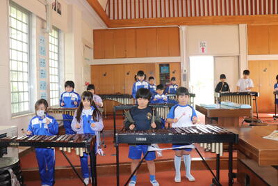 音楽の授業では、「木琴を使ってリズムをとる」内容を音楽堂で行いました。「汽車は走る」をCDや先生の手拍子に合わせて、木琴を叩きながら上手にリズムをとっていました。