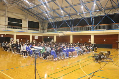 昨年に引き続き、劇団「歌舞人(かぶと)」の方をお招きして演劇鑑賞会を行いました。この演劇鑑賞会は、PTA廃品回収による収益金によって成り立っています。そこで保護者の方や地域の方にも一緒に鑑賞していただきました。児童にとって実際に演劇を間近で見る体験は、とても貴重で大きな財産になります。舞台装置(プロジェクトマッピング)や素晴らしい演技で、テーマである『ゆめ・ゆうき・なかま』を伝えてくれた劇団歌舞人の劇団員のみなさん、日頃より学校に多大なるご支援をいただいている保護者、地域の皆様に心より感謝申し上げます。ありがとうございました。