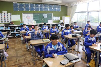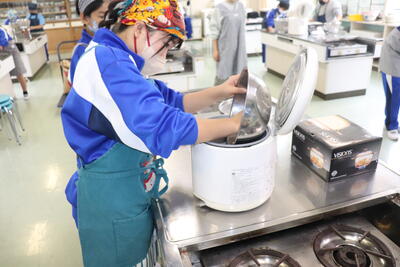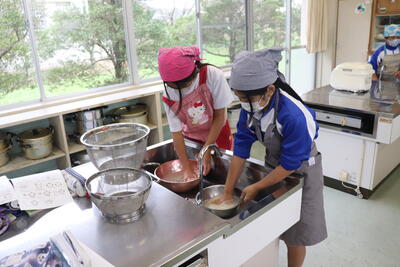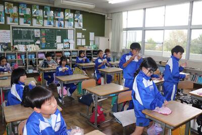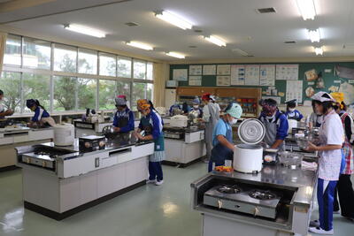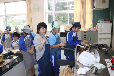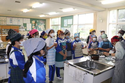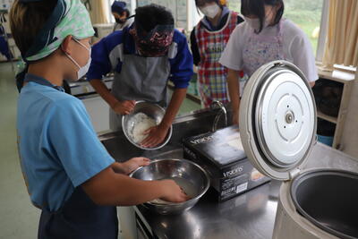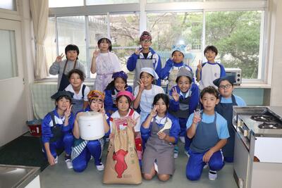 例年、稲刈り体験で収穫したお米を精米し、5年生の家庭科で炊いてもらい、おにぎりにしたものを全校児童でいただいています。1時間目から5年生がお米を研いで炊飯器に入れて炊いていました。(炊飯器と直火炊きの2つ)その後、先生方にラップでくるみながらおにぎりにしてもらい、各クラスでおいしくいただきました。(全クラス完食しました)地域ならではの伝統の良さを強く感じました。(新米は本当においしかったです)
