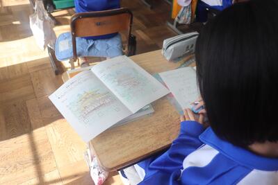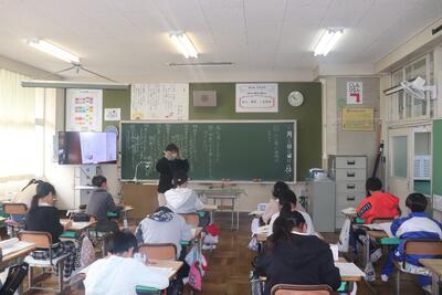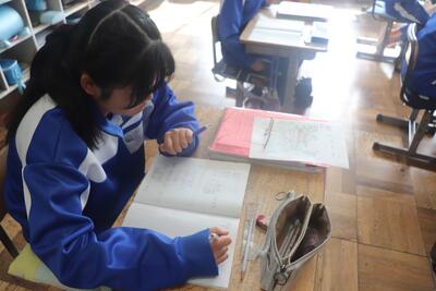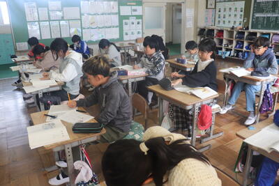 国語の授業では、「大造じいさんとガン」の続きを行いました。物語の中の具体的な事象よりおじいさんと残雪それぞれの心情について、児童が心に残ったことをまとめていました。一人一人、感じ方や伝わり方の違いが面白いと思いました。