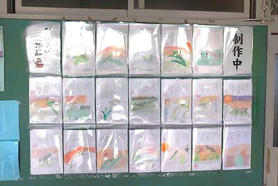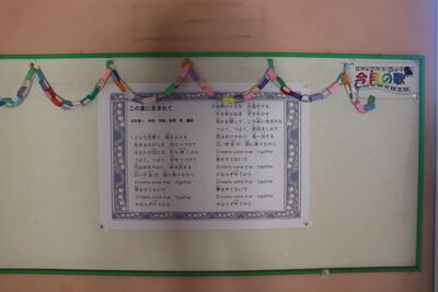 11月になりました。秋から冬へと季節は移ってきましたが、校内では、「芸術の秋」にふさわしい絵画や書画、詩など授業で取り組んだ作品が飾られています。今月の歌は「この星に生まれて」です。来月には校内音楽祭も予定されています。また、「読書の秋」では、読書フェアとして図書委員が考えたビンゴによる本に挟むしおりのプレゼント等が用意されています。この機会にスポーツ(運動)も含め、「~の秋」を感じて欲しいです。(焼き芋等食欲の秋もありますね!)