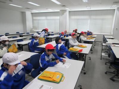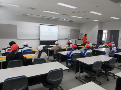 日本(にっぽん)製鉄の製鉄所見学に行ってきました。はじめに動画で説明を受けながらワークシートに記入しました。次に、ヘルメット、メガネ、軍手を着用して、右手での敬礼と同時の「ご安全に」というキーワードの説明後、バスで工場内をまわりながら施設の解説をしてくださいました。成田空港と同じ広さの敷地内にガソリンスタンドや病院など1つの町くらい様々な施設を抱えているそうです。生産される鉄を間近(離れていても熱い)で見学することができました。日本製鉄様には、担当職員の方のていねいなご対応、たくさんのお土産(学習帳やドリル、クリアファイル、缶や磁石等々)をいただき、ありがとうございました。