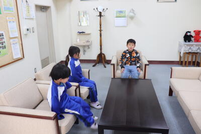 国語の授業では、「初めて知った学校のこと」という内容を学習しています。今日から先生方にインタビューが始まりました。そこで、もう一度内容を確認したり、わかったことを伝え合ったりしました。担任の先生からは、質問の内容だけでなく、質問の仕方などの所作も含めて教えてもらいました。(写真は校長室の様子)