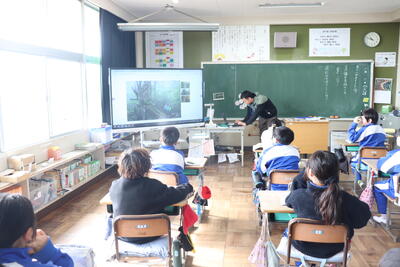 道徳の授業では、「命をつなぐ」という題名で屋久島の縄文杉(やくしまのじょうもんすぎ)について学習しました。担任の先生が教科書を読んだ後に、電子黒板で実際の画像を示しました。児童は、画像を見ながらその大きさに驚いたり、数千年という歴史に思いをはせたりしながら、縄文杉がつないできた歴史を踏まえて考えを発表しました。