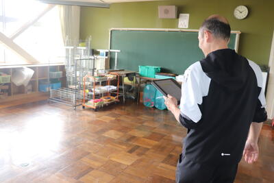明日から始まる新学期に向けて校舎内外の安全点検を行いました。今年度は、事務の先生が考案し作成したプログラムをもとに香取市配付のタブレットで点検をしました。点検後は、一括して確認を行えるのでとても便利です。結果として教育委員会に報告済みの故障個所以外は、特に大きな問題はなかったので、明日からの新学期も安全にスタートできます。