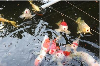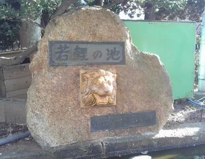 若鯉の池→若鯉が優雅に泳ぐ姿がいやしになります。北小のシンボルの一つです。いろいろな模様の鯉がいます。マーライオンの様なものがあります。