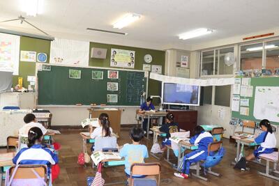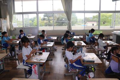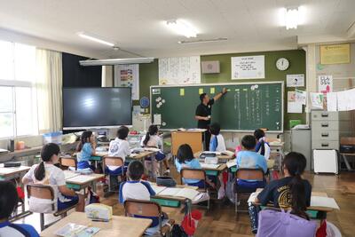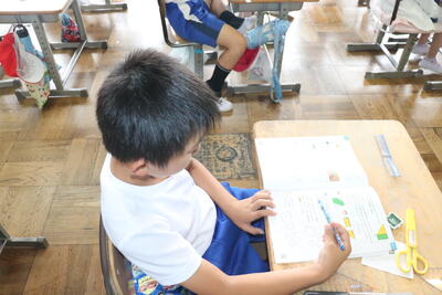 朝のがんばりタイムでは、応援団が作ったビデオを見て、応援練習に取り組んでいました。1年生は元気で意欲的に取り組むので、覚えることや上達が早いです。国語の授業では、「誰が食べたのでしょう」題名で、餌となる写真からその動物を考える内容でした。児童は、一生懸命に教科書を見ながら餌とそれを食べる動物を結び付けていました。