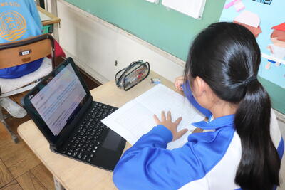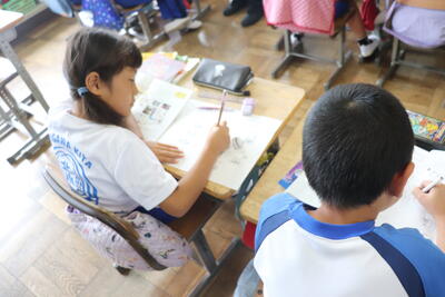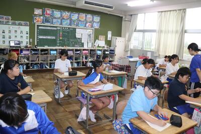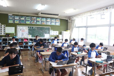 総合的な学習の時間では、職業調べを行っていました。それぞれ、タブレットを使って自分が決めた職業について調べたあと、そのことをまとめていました。今後、発表するために作文用紙に書き写していました。6年生がどのような職業に興味をもっているのか、発表が楽しみです。