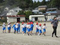 1年生が、体育館で、ボールをカラーコーンに当てて、倒すゲームをしていました。運動しやすい気温になってきたので、子どもたちもとてもいきいきと、身体を動かしていました。