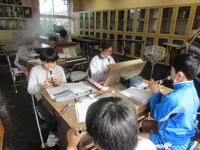 6年生が、体育館で、書初めの練習をしていました。今年度の題材は、「新春の朝」です。ポイントを教えてもらった後、みんな集中して練習に取り組んでいました。