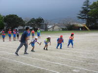 2年生が、体育館で体育の授業をしていました。運動会のチャンス走をイメージしながら、色々な動きをしながら活動していました。最後に、先生とジャンケンをして勝ったらゴールというルールで、子どもたちが、とても盛り上がっていました。