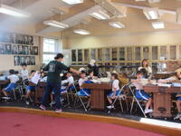 2年生が、小見川図書館に見学に行きました。図書館で働く人の仕事について質問したり、大型絵本の読み聞かせをしてもらったりしました。図書館に本が、54,000冊もあることを知り、とてもびっくりしていました。