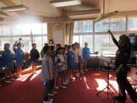 1年生が、体育館で、ボールをカラーコーンに当てて、倒すゲームをしていました。運動しやすい気温になってきたので、子どもたちもとてもいきいきと、身体を動かしていました。
