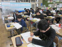 1年生が、国語の授業で、カタカナの学習をしていました。カタカナをどのくらい覚えているのかをプリントを使って、確かめていました。みんな、とても集中して学習に取り組んでいました。