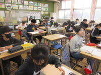 6年生が、国語の授業をしていました。難しい語句について、辞書を使って調べてから本文に入っていました。語彙量を増やすことが、本校の課題となっていますが、そのために、辞書も活用しています。