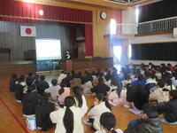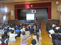 冬季休業後全校集会が、行われました。13日間の冬休みが終わり、子どもたちが元気な顔を見せてくれました。養護教諭から、感染症予防のための「こうかてき」について話をしました。昨年は、インフルエンザが年末に流行しましたが、これから寒い時期が続くので、しっかりと感染症対策をしていきたいです。