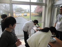 6年生が、校外学習で、銚子ジオパークミュージアムに行きました。屛風ヶ浦ができた歴史を学んだ後、地層をつくっている土砂を触ったり、火山灰を顕微鏡で見たりしながら、地層についてたくさんのことを教えていただきました。最後に、銚子で発掘された化石を触らせてもらい、みんな大喜びでした。とても意義のある見学となりました。