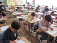 マラソン大会が終わったので、今日から通常日課に戻りました。朝の活動では、ドリル学習をしていました。どのクラスも集中して、学習に取り組んでいました。