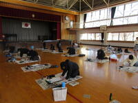 校内書初め大会が、行われました。練習の成果を発揮しようと、みんな集中して作品作りに取り組んでいました。納得できた文字が書けた子、思うように書けなかった子、いろいろな子がいたようですが、みんな精一杯頑張っていました。