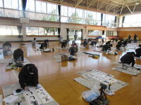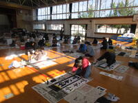 6年生が、体育館で、書初めの練習をしていました。今年度の題材は、「新春の朝」です。ポイントを教えてもらった後、みんな集中して練習に取り組んでいました。