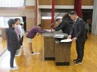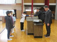 修了式が、行われました。1~5年生の代表児童に、1年間の修了証書を渡しました。それから、5年生の代表児童と、1年生全員が、1年間を振り返っての発表をしました。とても、立派な発表でした。最後に、校長と生徒指導主任が、1年間のまとめや春休みの過ごし方について、話をし、1年間のまとめの式が終わりました。