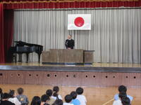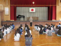 防災集会が、行われました。東日本大震災の時、小見川西小学校に務めていた校長が、当時の様子について、写真をもとに話をしました。地震は、いつ、どこで起こるかわかりません。「自分の命は自分で守る」こと、そして、地震に備えておくことが大切であると考えます。
