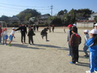 かみさとグループに分かれて、異学年でいろいろな遊びをしました。へびじゃんけん、タイヤじゃんけん、ドッジボール、鬼ごっこなど、6年生を中心に楽しく交流しました。