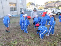 1年生が、生活科の授業で、冬を探していました。日なたと日かげの地面の様子や樹木の様子などを観察しながら、春夏秋との違いについて、考えていました。