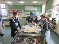4年生が、1年間のまとめのお楽しみ会として、家庭科室で、ポップコーンづくりを行っていました。初めて使う調理台なので、使い方を説明してから、調理をしていました。美味しそうなポップコーンがたくさんできて、みんな嬉しそうでした。