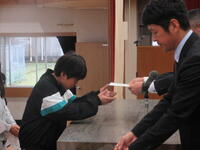6年生が、明日の運動会の準備をしていました。応援団長は、選手宣誓の練習を、他の子どもたちは、万国旗の準備をしていました。明日に向けての準備が、着々と進んでいます。