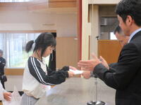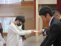 後期学級役員認証式が、行われました。1~6年生の学級役員が紹介され、代表で各学級の会長に、認証状を渡しました。最後に6年生の会長が、誓いの言葉を述べました。各学級のリーダーとして、みんなが笑顔で過ごせる学級となるよう、がんばってほしいです。