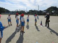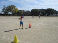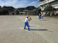 4年生が、体育の授業で、ベースボール型ゲーム(ティーボール)を行っていました。始めは、バットでボールを打つことが難しい子もいたようですが、上手に打てるようになってきました。