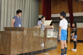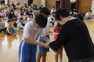 体育館で「学級役員認証式ならびに賞状伝達」を行いました!