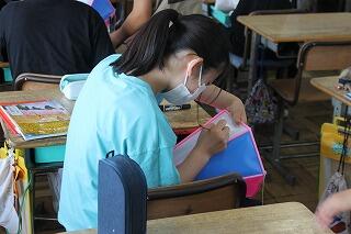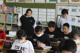 6年生の教室では 社会科に向けて問題の出し合いをする光景もありました