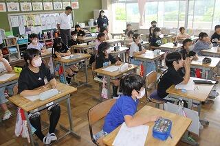 テスト前に3・4・5・6年生の教室を訪問したのでパチリ