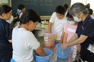 具体的な声掛けにうなずきながらこたえようと頑張る6年生