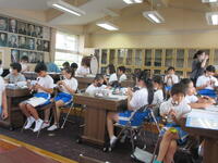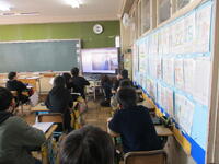 それぞれの教室でも、子どもたちの明るい笑顔があふれていました。2時間目の様子を紹介します。1年生は冬休み楽しかったことの発表をするところでした。2年生は冬休みに借りた本を返すため図書室にいました。3年生でも冬休みの思い出を発表していました。4年生は、グループごとに「冬休みの思い出すごろく」をしていました。わかば・なかよしさんは冬休みの思い出発表をした後でした。5年生ではALTの先生と一緒に外国語の授業、6年生ではしっかり算数の授業、さすが高学年になると違いますね。それぞれのスタートをきった一日でした。