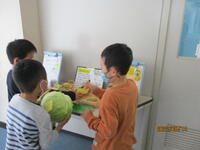 いよいよお店屋さんのオープンです。お客さんは先生方です。元気のよい呼び声とともに先生方がお買い物をしました。この活動は生活単元や自立活動の学習として、また、お金の計算や重さをはかる算数や、案内状を作成するための国語の学習だったり、ミシンを使って家庭科の学習だったり、実に様々な学習をしています。実り多い学習であり、活動となりました。