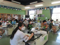 5年生。家庭科の調理実習でお米を炊くのとみそ汁づくりを行いました。グループごとに協力して美味しいごはんとみそ汁ができました。