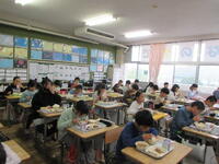 もうすぐ卒業を迎える6年生に栄養教諭の先生から栄養指導がありました。中学生になると時間がなくて朝ごはんを食べない子が増えるので、「朝ごはんの大切さ」について話してくださいました。朝ごはんを食べる子とそうでない子を比べると圧倒的に朝ごはんを食べる子の方が成績も運動もよいという調査結果があるそうです。